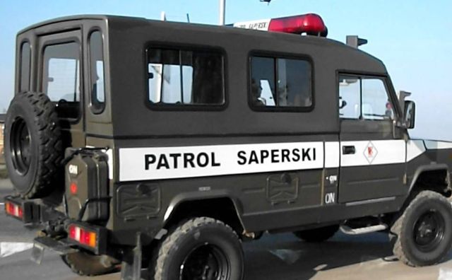 Saperzy sprawdzają teren przy szpitalu w Gryfinie