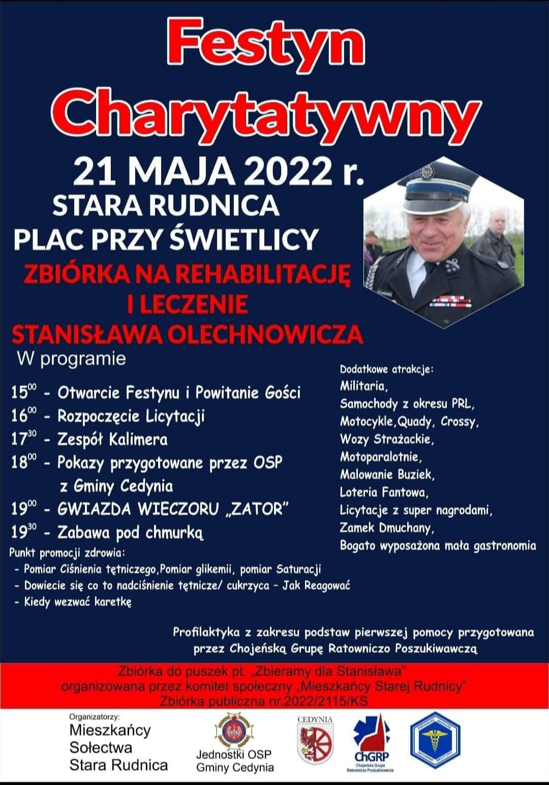 Mieszkańcy miejscowości Stara Rudnica (gmina Cedynia) zapraszają na Festyn Charytatywny na rzecz Stanisława Olechnowicza.