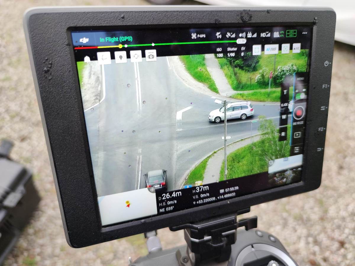 Policjanci Ruchu Drogowego Komendy Powiatowej Policji w Gryfinie oraz Komendy Wojewódzkiej Policji w Szczecinie prowadzili wspólne działania pn. "Nieustąpienie Pierwszeństwa Przejazdu" z wykorzystaniem bezzałogowego statku powietrznego.