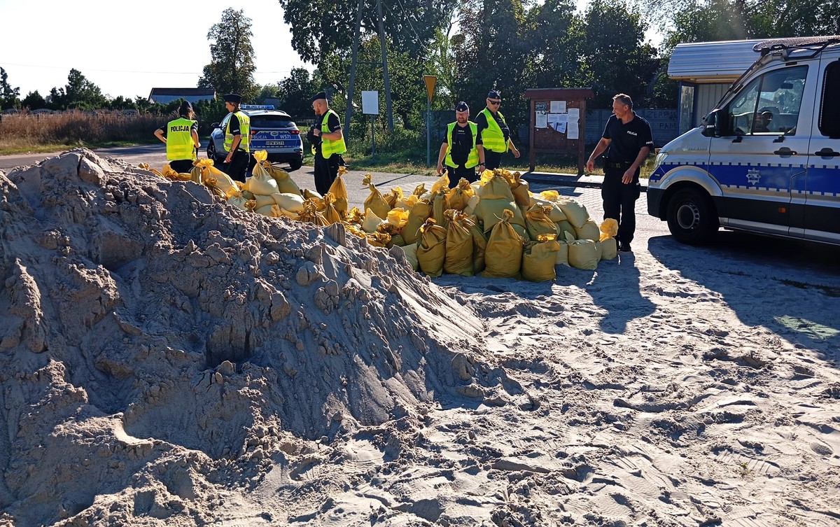 Mundurowi pomagają mieszkańcom w napełnianiu worków piaskiem i zabezpieczaniu budynków przed zalaniem. Ponadto wspierają inne służby w zabezpieczaniu miejsc zagrożonych przez ustawianie barier oraz ograniczenie dostępu do niebezpiecznych terenów. Apelujemy do wszystkich mieszkańców, o zachowanie szczególnej ostrożności i prosimy, aby nie zbliżać się do obiektów hydrotechnicznych oraz o respektowanie wydanego zakazu by nie wchodzić na wały przeciwpowodziowe. Dbajmy o siebie nawzajem i współpracujmy ze służbami.